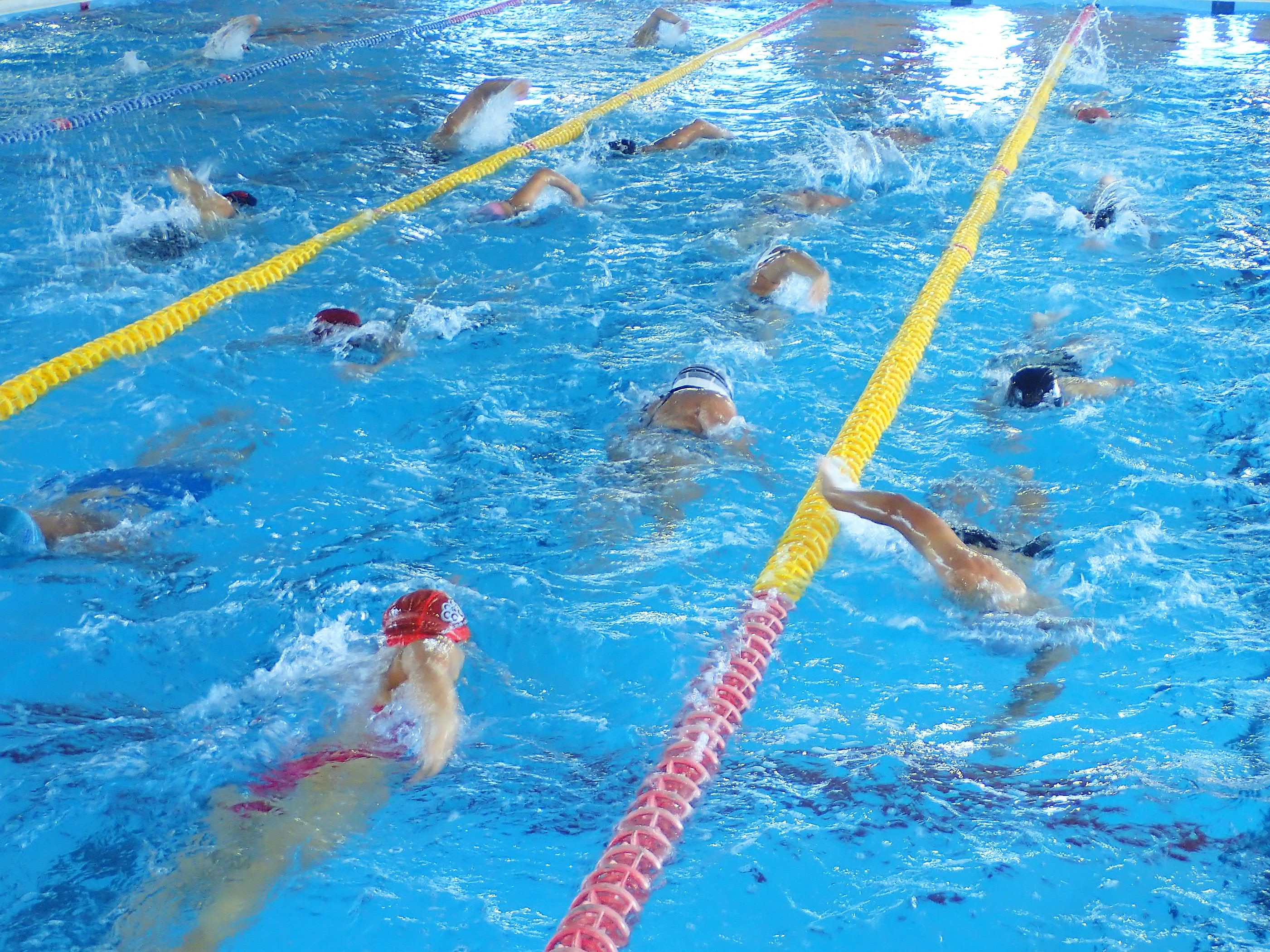 疲れをためないように、少し強度を落としたメニューで実施している、今週のレッツスイム新代田。