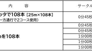 今年も10本毎に休憩しながら108本泳ぎましょう!各距離を10本毎に10回休憩プラス8本で108本、煩悩の数を泳ぎます。【トレーニング内容】開催要項日時2024年12月29日(日)受付 8:30入口施錠 9:00※防犯上の関係により、OPE...