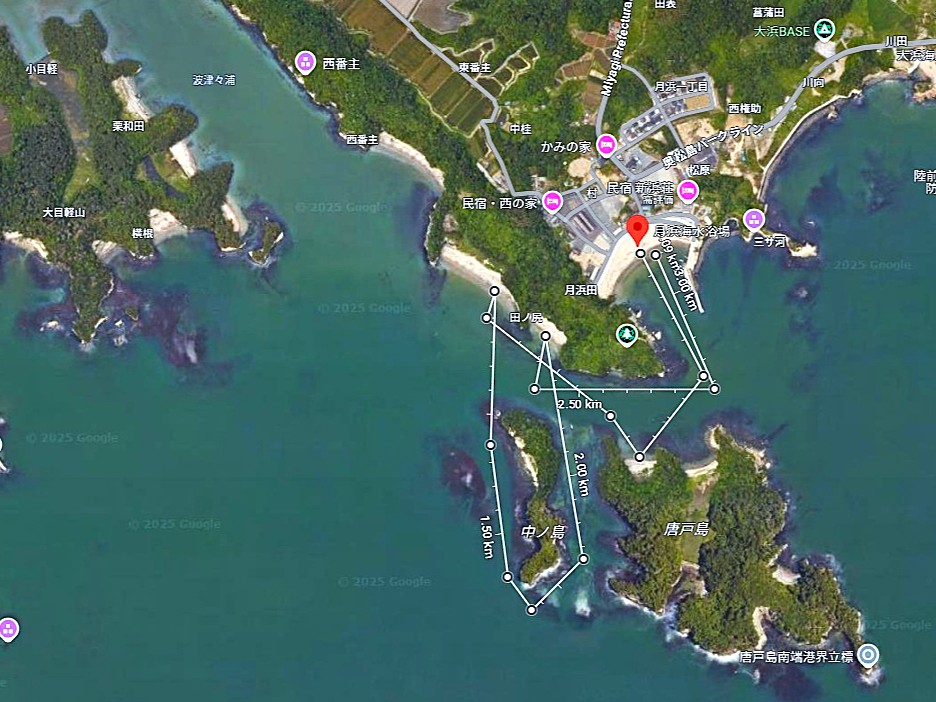 | 場所 | 宮城県松島 月浜海水浴場 ~ 唐戸島・中ノ島周辺 | ||||||||||||||||||||||||||||