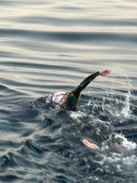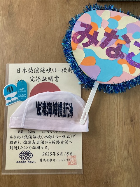 石垣島とか奄美大島、あと新島や湘南の大会にも何回か出ています。佐渡海峡横断リレーも、2023年と2024年に参加しました。といっても1回目の参加の時は船酔いがひどくて、まったく泳げず戦力外でしたけど(笑)。2024年に再びチャレンジをさせてもらったら、今度は船酔いもなく海峡横断を楽しむことができました。