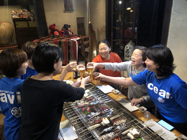 | 19:00 | 夕食&親睦会 | ・1Fフロント横に階段がありますのでそこを昇って2Fのお部屋に集合してください。 |
