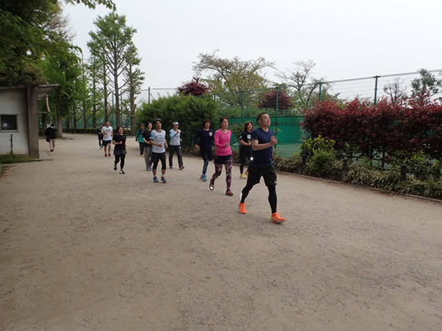 今朝のメニューは中腰でのウォークドリル(骨盤周りのインナーマッスルの強化)+ちょっと長めのインターバル走。レッツランモーニングが休みの間もちゃんと自主トレをやっていたなら筋肉痛にはきっとならないはず。
