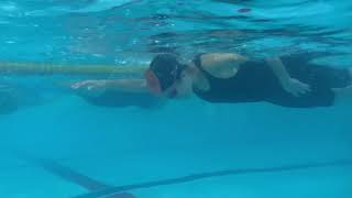先週末は、パドルを頭の前に添えて泳ぎ、呼吸をしてもパドルが頭から離れないようにするドリルを実施しました。