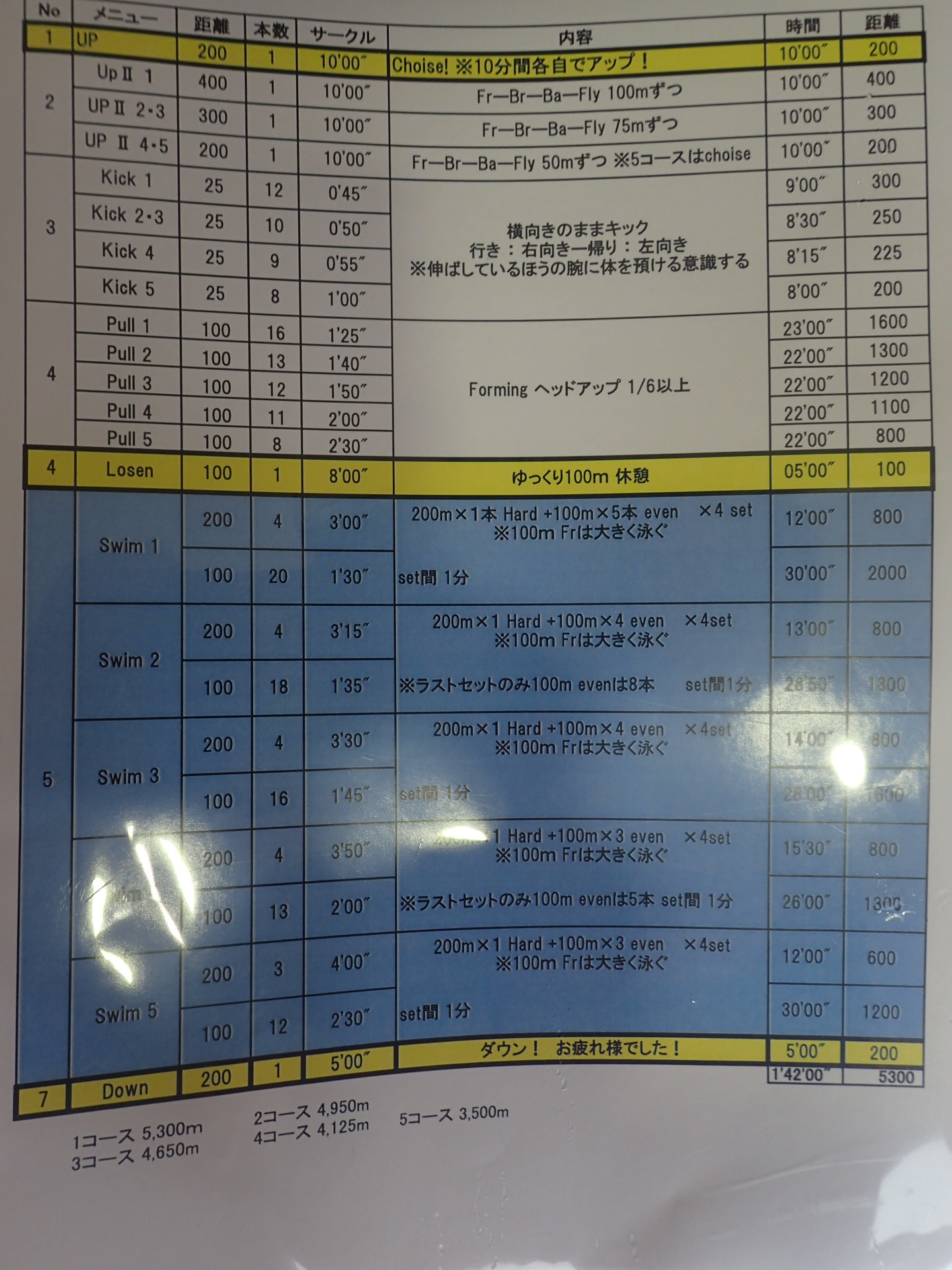 今日のレッツスイム新代田のtotal距離は