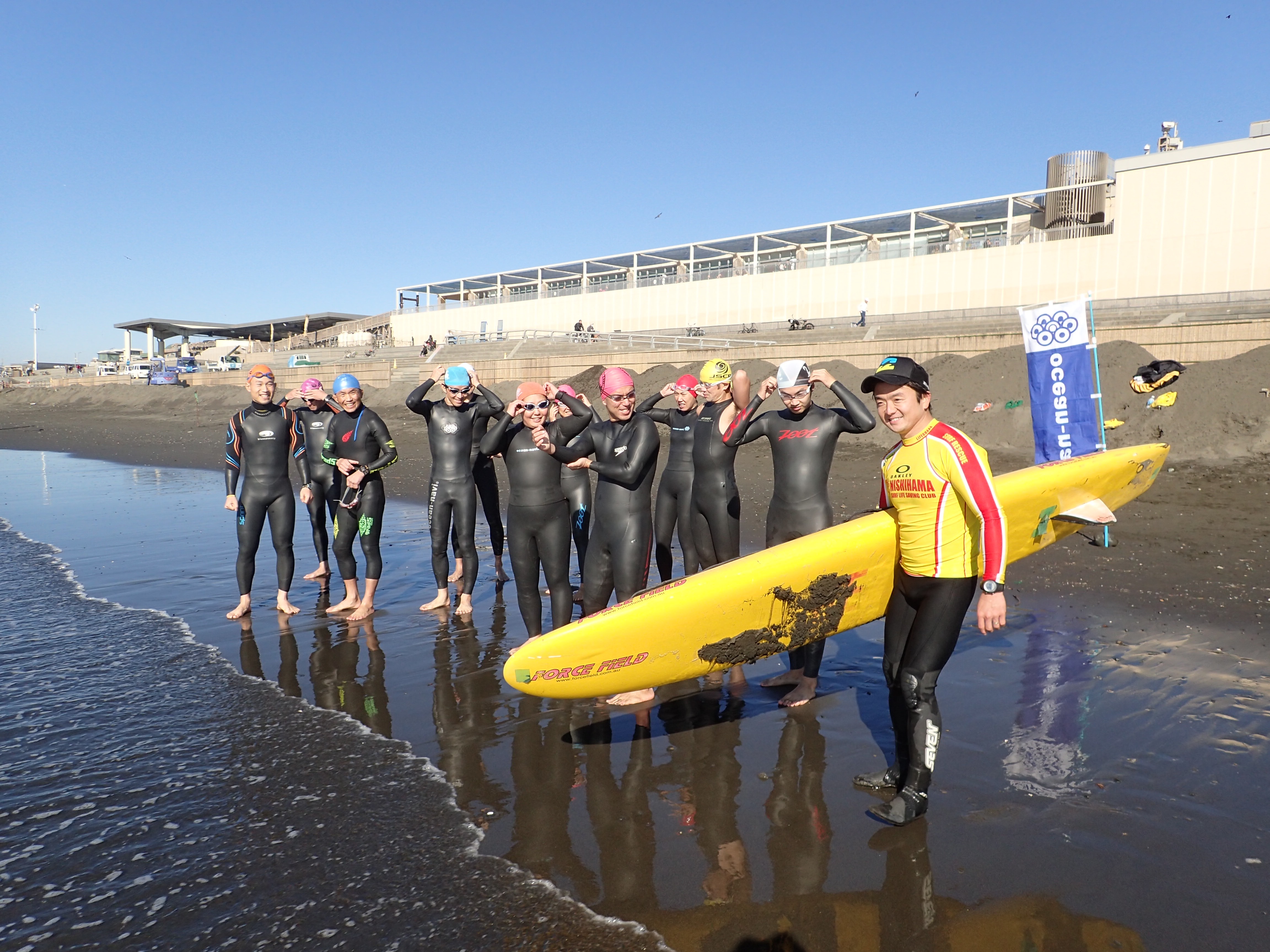 「最後の100mのメニューは、全然思うように泳げず、すごい疲れました。こりゃ、海での実践トレーニングを積まないと、ヤバいですぅ」という感想をいただきました。