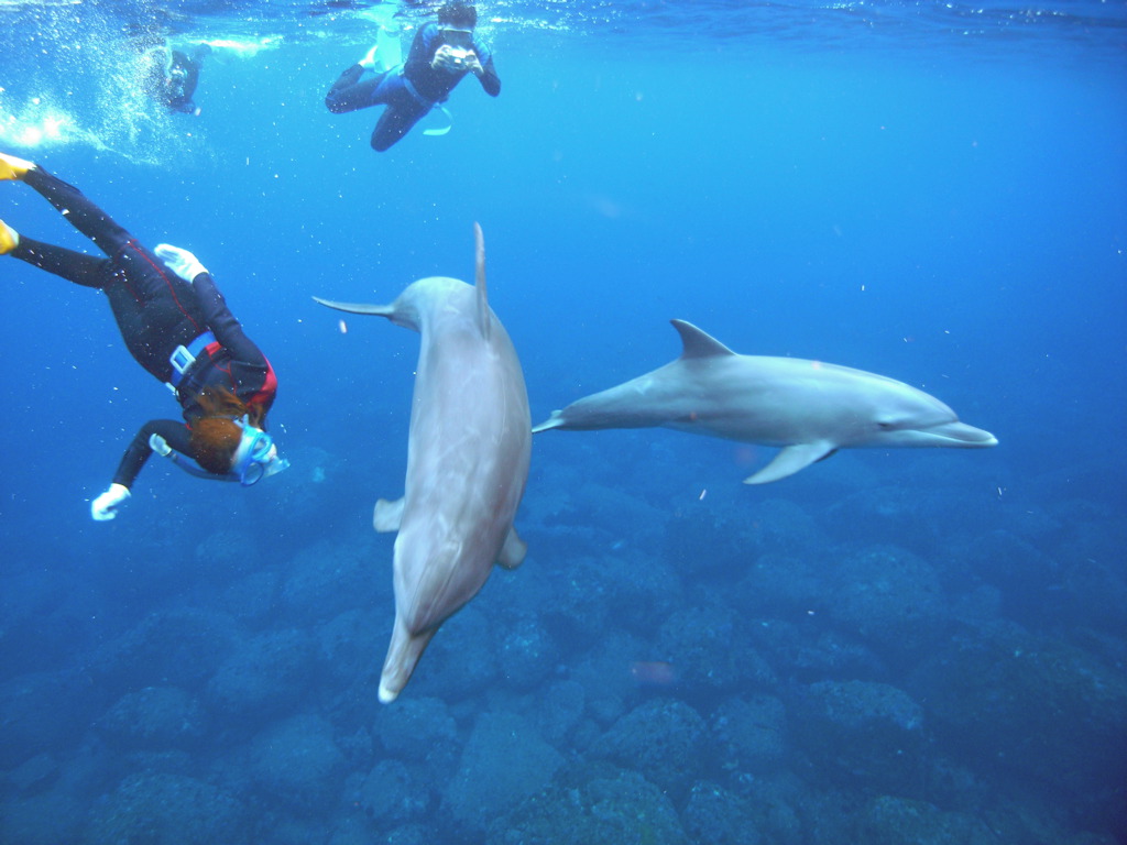 透き通った青い海で、フレンドリーなイルカと一緒に泳げば、癒やされること間違いなし!運が良ければ、生まれたばかりのイルカの赤ちゃんとも一緒に泳げるかも(^^)/