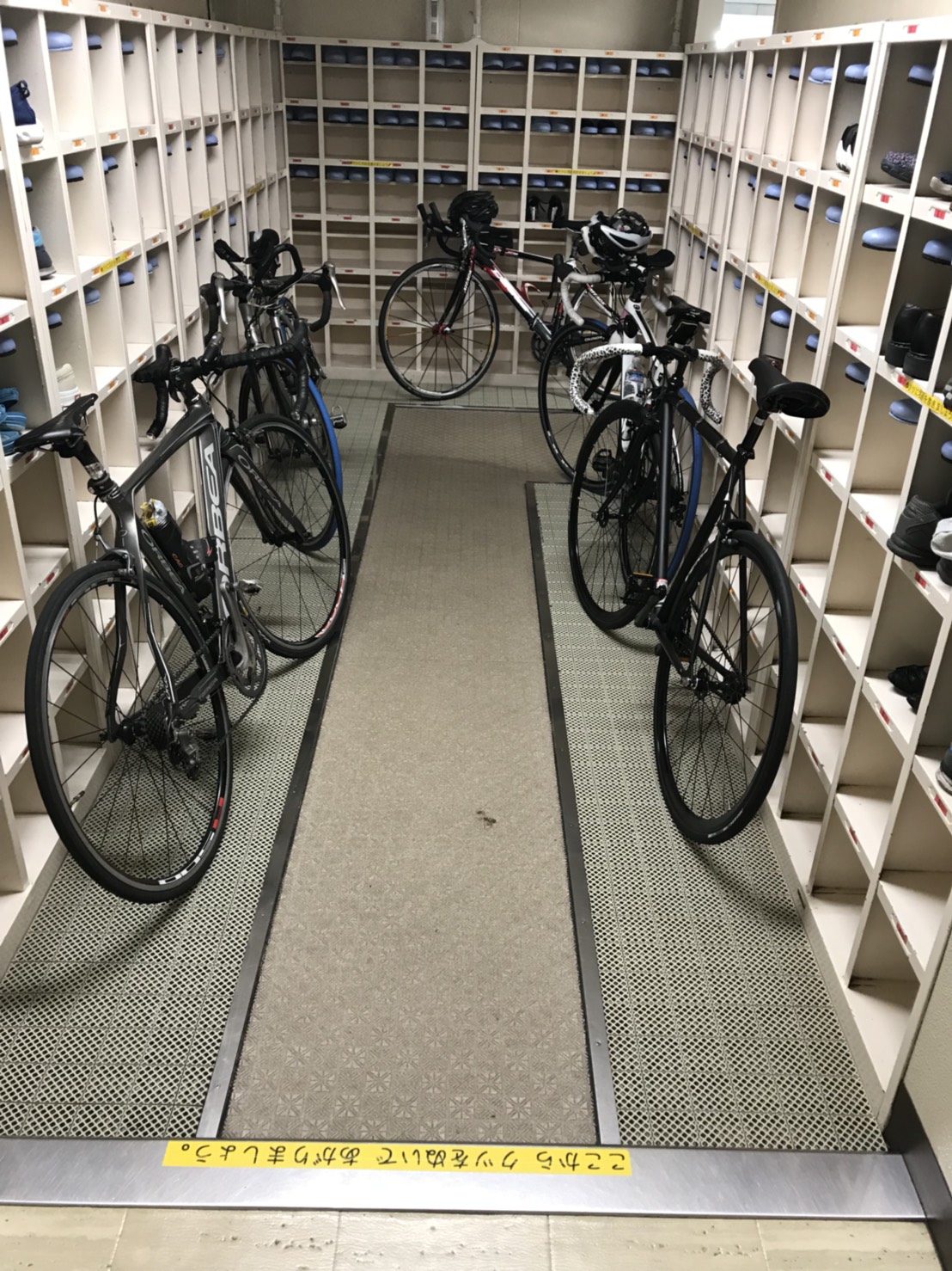 ロードバイクを館内で保管する場合について、タイヤの下に敷くパネルマットを用意いたしました。