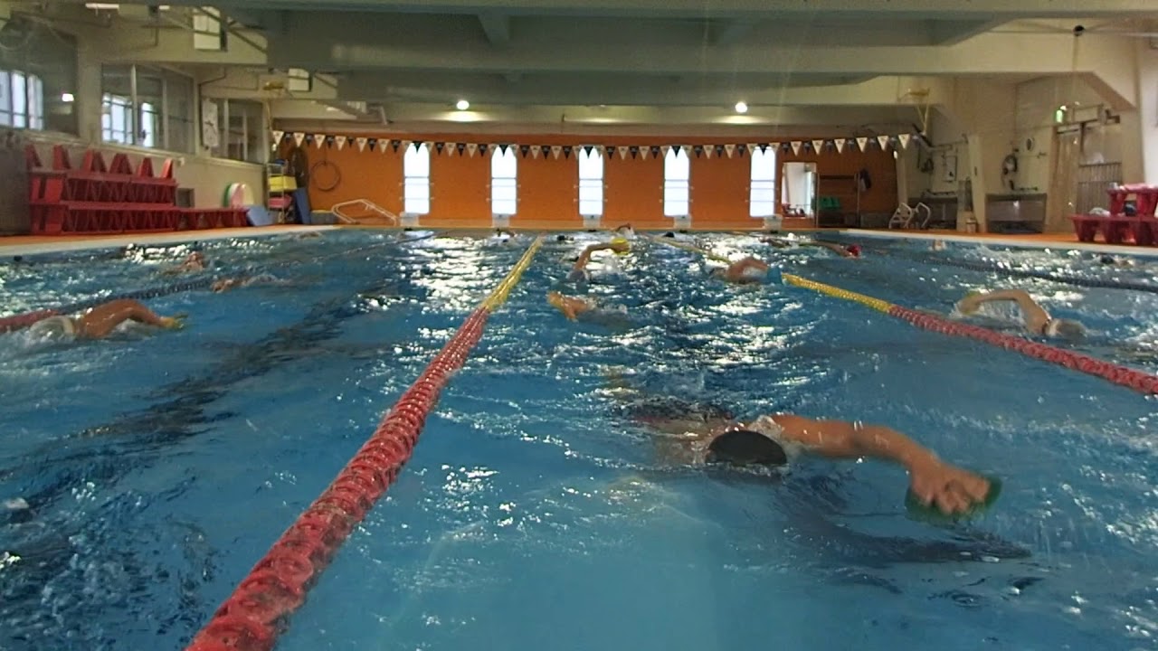 今日のドリルはお腹の下にビート板をおいてクロールの「ビート板飛ばし」じゃなくてビート板がお腹から外れないようにして泳ぎます。