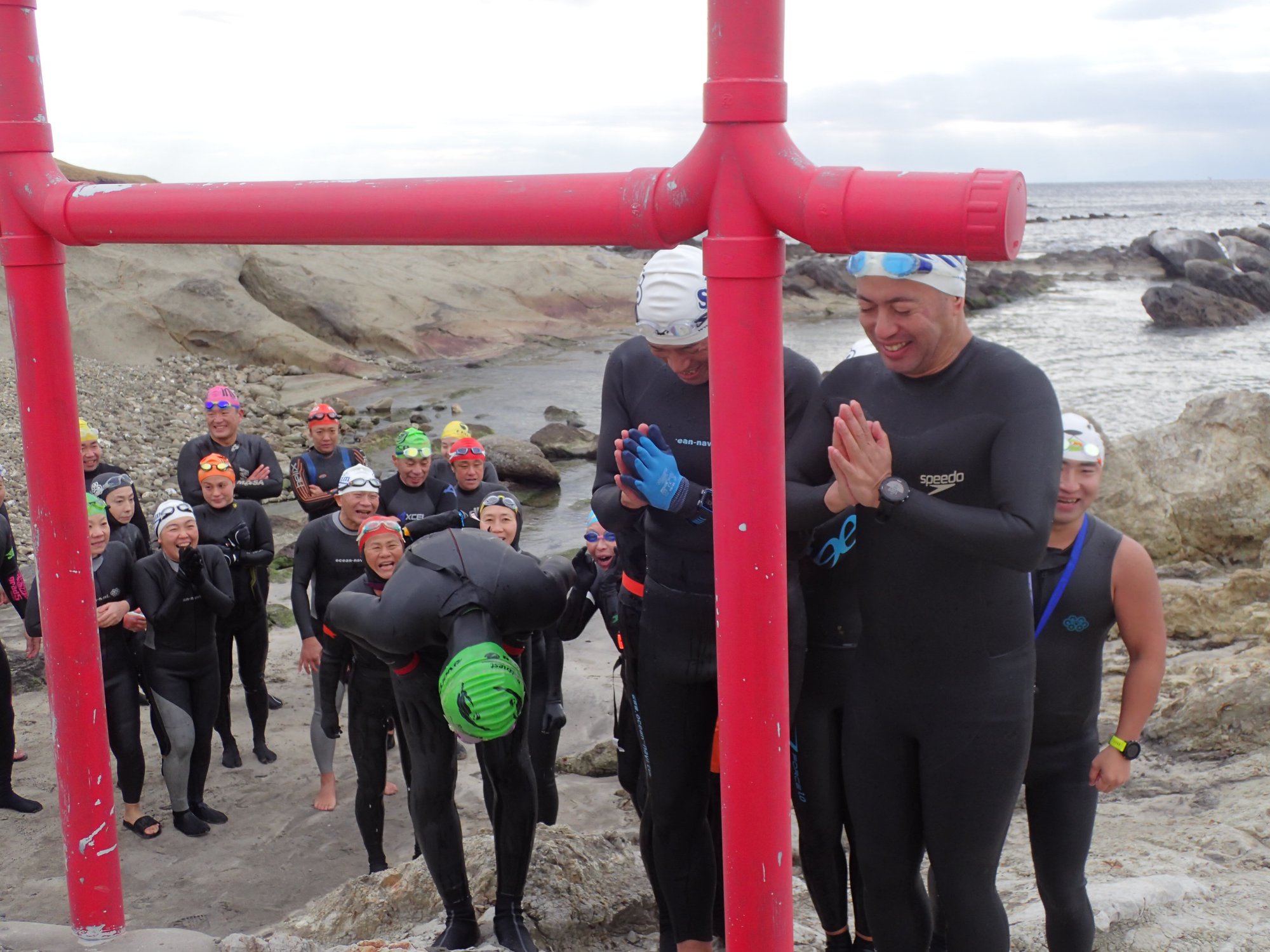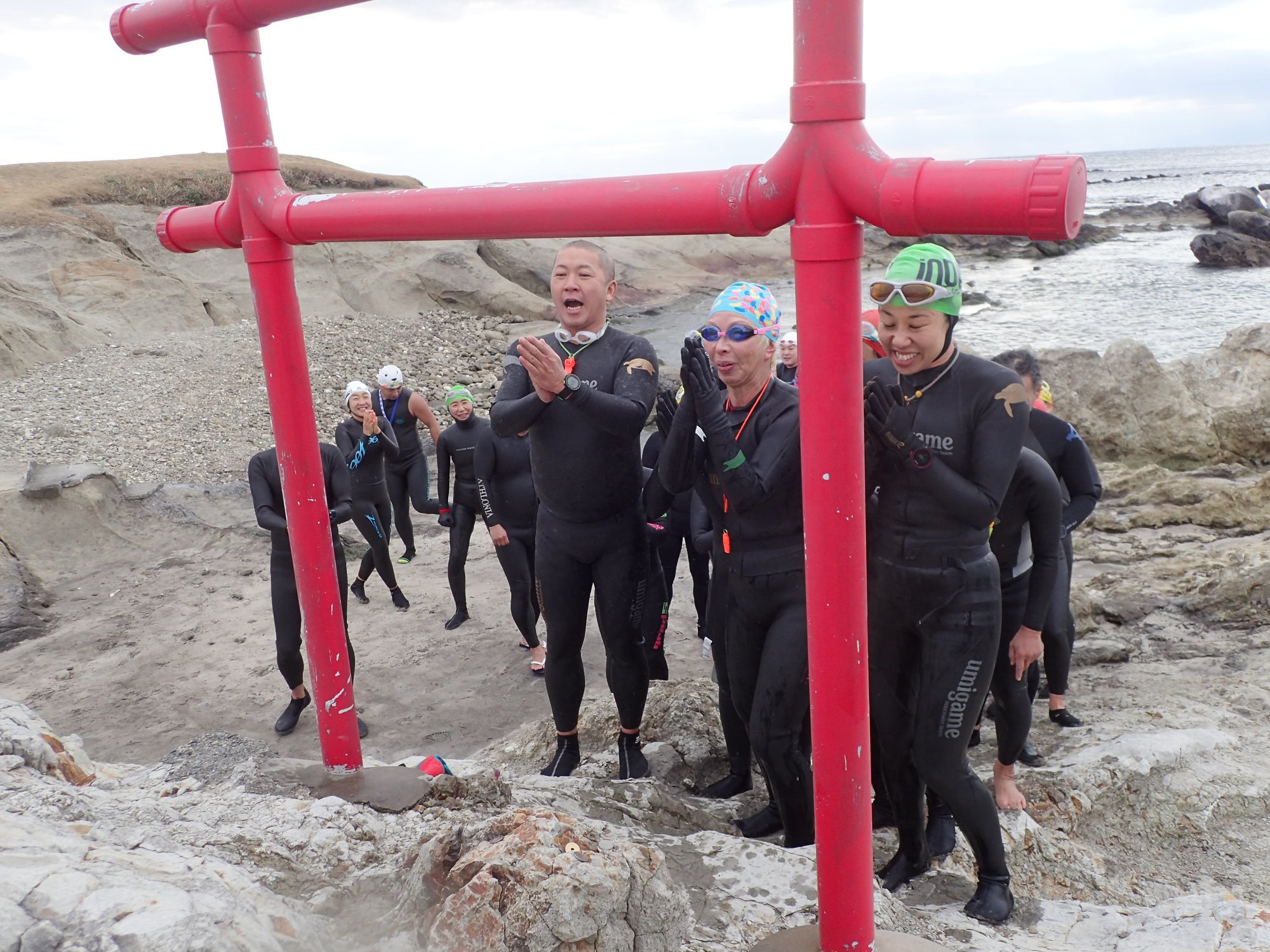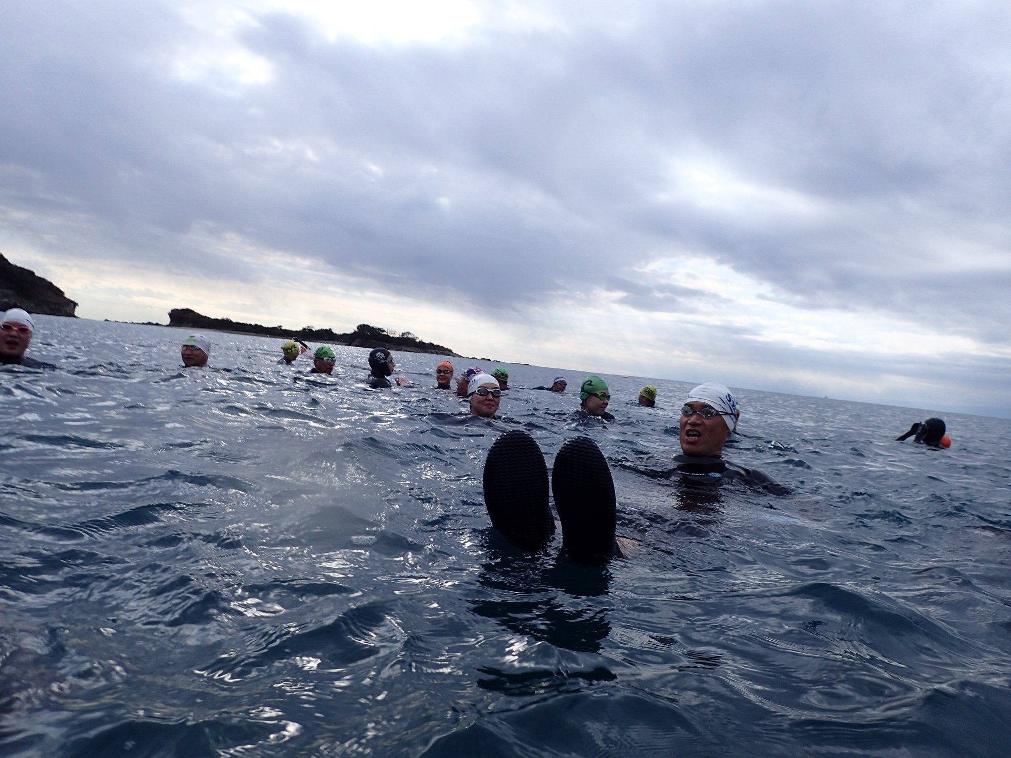 毎年1月のこの時期に葉山長者ヶ崎で実施をしているウィンターオーシャンスイム!葉山長者ヶ崎からスタートして一色海岸付近にある竜宮様へ泳いで初詣へ行ってきました。天候こそ曇りでしたが冬海の透明度は抜群!海一面を覆い尽くすような魚の群れに遭遇したりとっても楽しいオーシャンスイムになりました。もちろん竜宮様ではお神酒を備えてみんなで今年1年の海の安全を祈願してきましたよ。