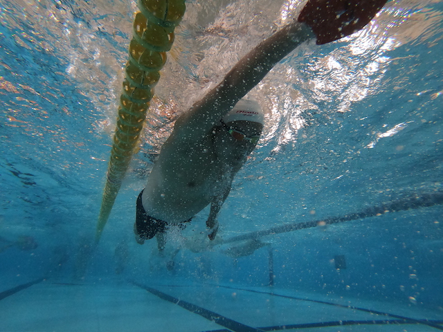 今朝のレッツスイム新代田はちょっとスピードを意識した内容。サークルタイムは長めに設定して1本1本集中してスピードを上げていくトレーニングでした。と、言ってもトータル距離は4,500m前後。練習が終わってみると「お腹いっぱい!ごちそうさまでした!」なんていう方もいましたね。今朝参加されたみなさんのプルのときのフォームを撮影してオーシャンナビ公式facebookページに載せておきましたのでぜひご覧くださいね! 1コースの映像だけこちらにも掲載しておきます。