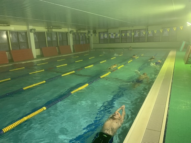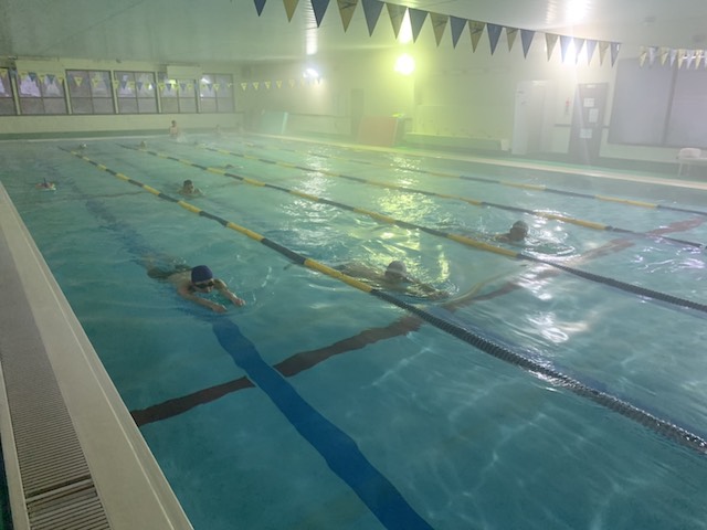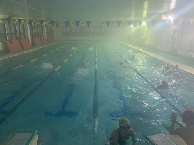 プールでの測定では、各自の目標タイムを基に参加者は各々の組レーンに分かれて測定と記録を交互行いました。