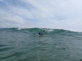 泳いでる途中で、スムーズに水深50cmくらいのところを2秒間潜っていられると、ほとんどの波はかわすことができます。