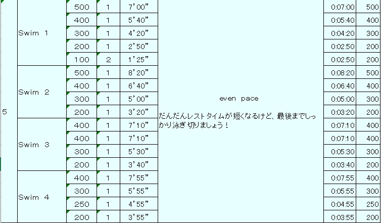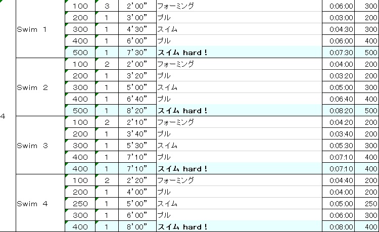 今日と先日の日曜日の新代田のメインメニューは、1本ずつ泳距離を変えていって、ロングに対する抵抗を取っ払うというトレーニングでした。