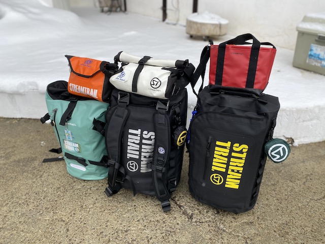 話は変わりますがチーム指定バッグのようは状態?になっているストリームトレイルの防水バッグですが、意外と、オーシャンナビで購入できることを知らない方も多いようです。このところ新代田と町田にカタログを用意してありますが、カタログに載っているものでメーカーに在庫があるものは全てオーシャンナビでご購入いただけます。しかも消費税分割引の10%OFF(一部細かい商品を除く)。そしてオーシャンナビマーク入り(一部商品を除く)です。ご参考までに一部の写真を掲載しておきますね。