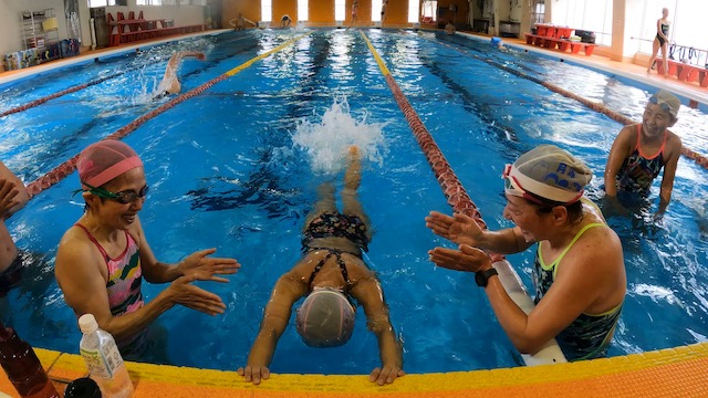 今朝のレッツスイム新代田はヘッドアップクロールや壁キックダッシュ、メインは持久系インターバルトレーニングでキツイけど楽しめるメニュー。笑顔が絶えない?トレーニングになりました。その様子は映像でぜひご覧ください。
