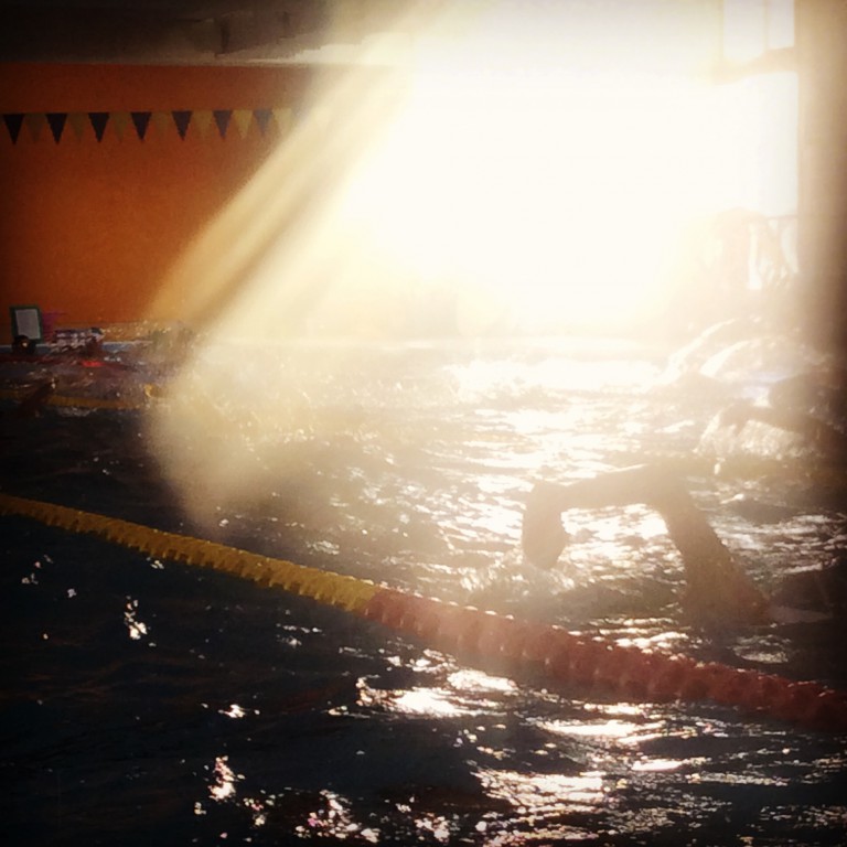 7時過ぎになると窓から光が入ってプールはこんな感じになるんです。この時間がなんとも言えず気持ちがいい!ぜひ新代田の朝スイムお試しあれ!
