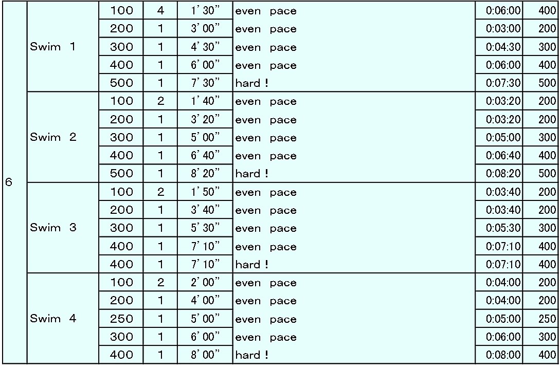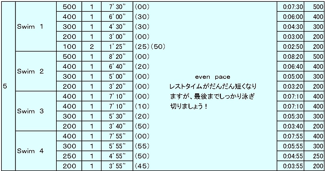 昨日と今日の新代田のメインメニューは、1本ずつ泳距離を変えていって、ロングに対する抵抗を取っ払うというトレーニングでした。