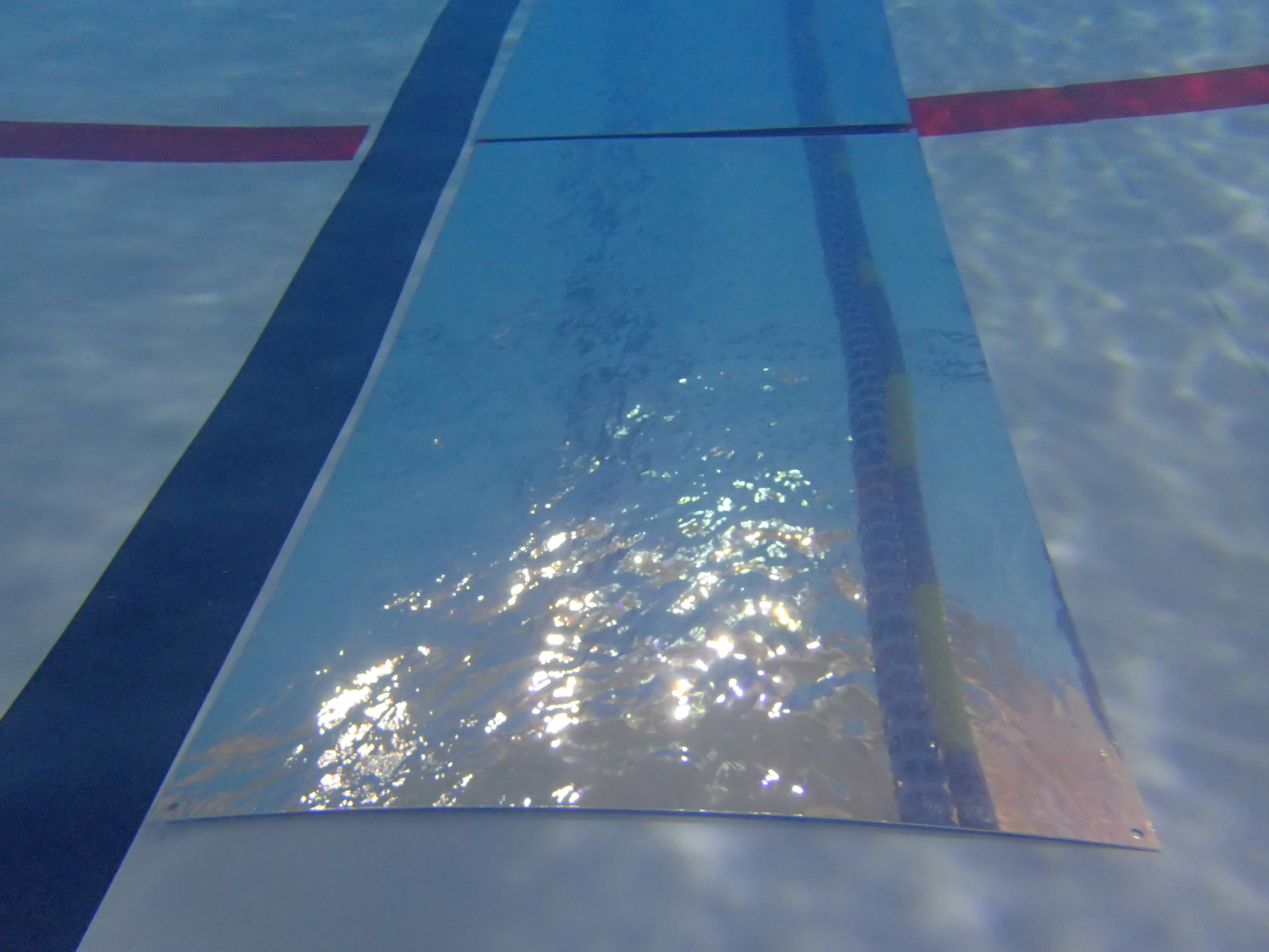 そして、それに応じたドリル練習をやったあとに、久しぶりにプールの底に鏡を設置して泳ぎました。