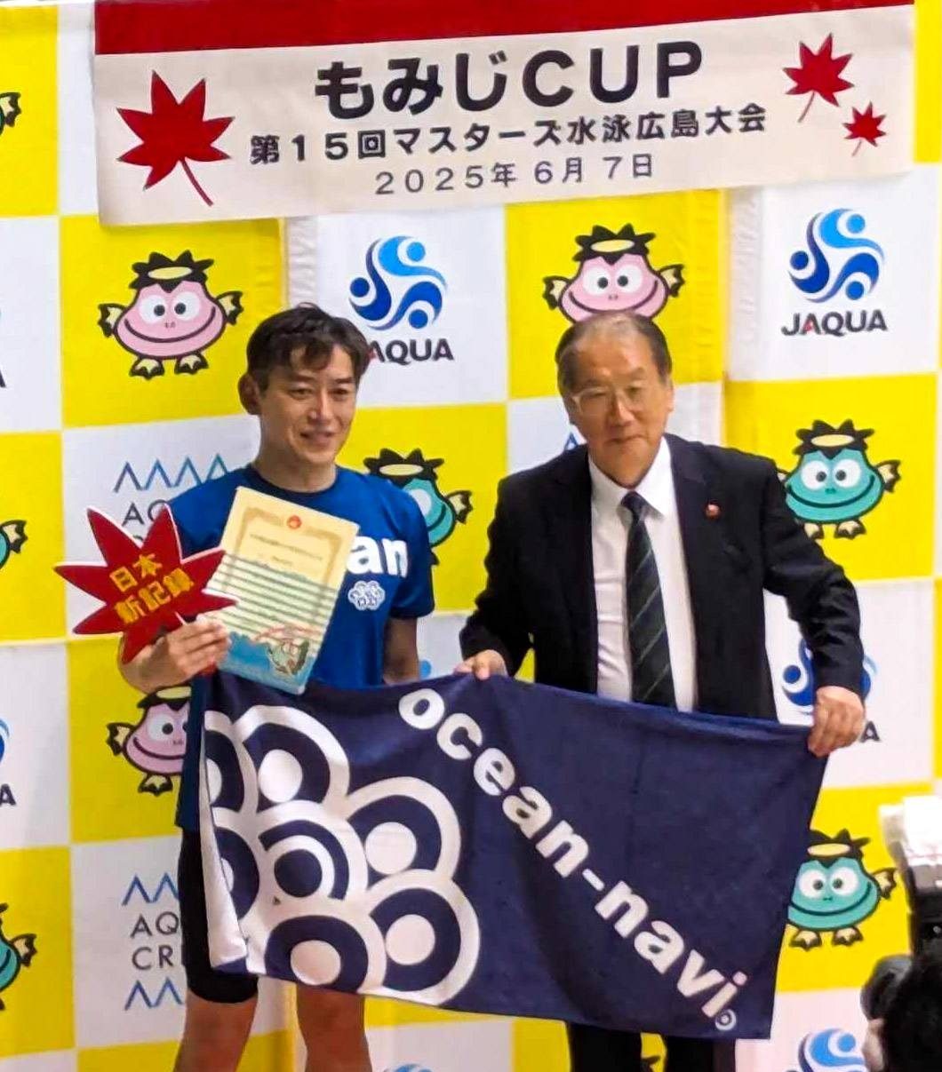 先週末は競泳のマスターズの大会が平塚と広島で開催されたのですが、広島の大会でオーシャンナビマスターズチームの茂出木孝臣さんが、1500m自由形のマスターズ日本記録を樹立されました🎉